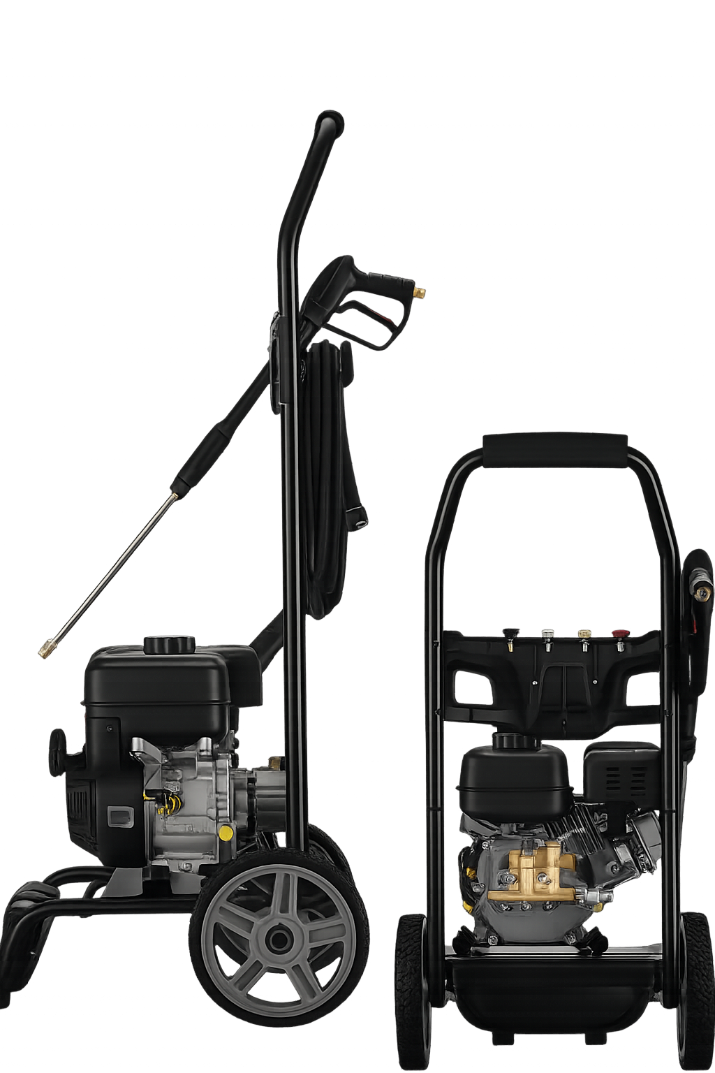 Kõrgsurvepesur, mis on varustatud võimsa 7 hj sisepõlemismootoriga. See on loodud intensiivseks kasutamiseks ning sobib ideaalselt sõidukite, põllumajandusmasinate, sillutuskivide ja fassaadide puhastamiseks. Tänu kõrgele töörõhule ja suurele veevoolule eemaldab pesur tõhusalt isegi kõige kangekaelsema mustuse. Tugev metallraam, suured pneumaatilised rattad ja ergonoomiline käepide tagavad mugava transportimise ja stabiilsuse töötamise ajal. Sisseehitatud 1,8-liitrine pesuvahendipaak võimaldab puhastusvahendeid tõhusalt kasutada, samas kui nelja vahetatava otsiku komplekt võimaldab veejoa kohandamist erinevate ülesannete jaoks.